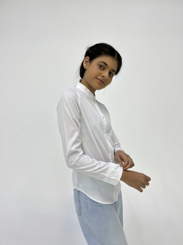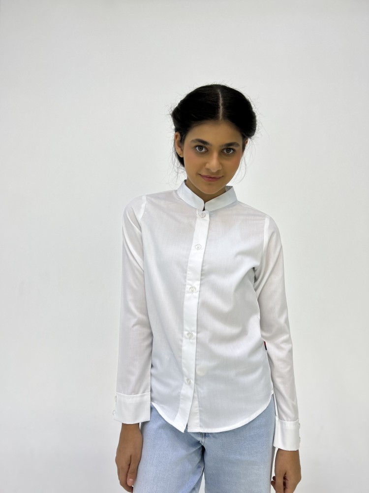 صُممت بلوزة إزاري المدرسية الأنيقة بطريقة تجعل هناك تناغم بين الراحة والأناقة معاً ليتناسب مع جميع الاذواق. وتتكون من مزيج مثالي من نعومة القطن ومتانة البوليستر, كما أنها تتميز بمقاومتها للتجاعيد وسهولة التنظيف, وجودتها العالية التي تعكس متانة الملابس وقدرتها على التحمل, مما يسهل الحفاظ عليها بصورة جيدة ونظيفة لفترة أطول. تحتوي بلوزة إزاري المدرسية الأنيقة على أكمام بأطراف سادة وبها أزرار للزينة, وأزرار للإغلاق.