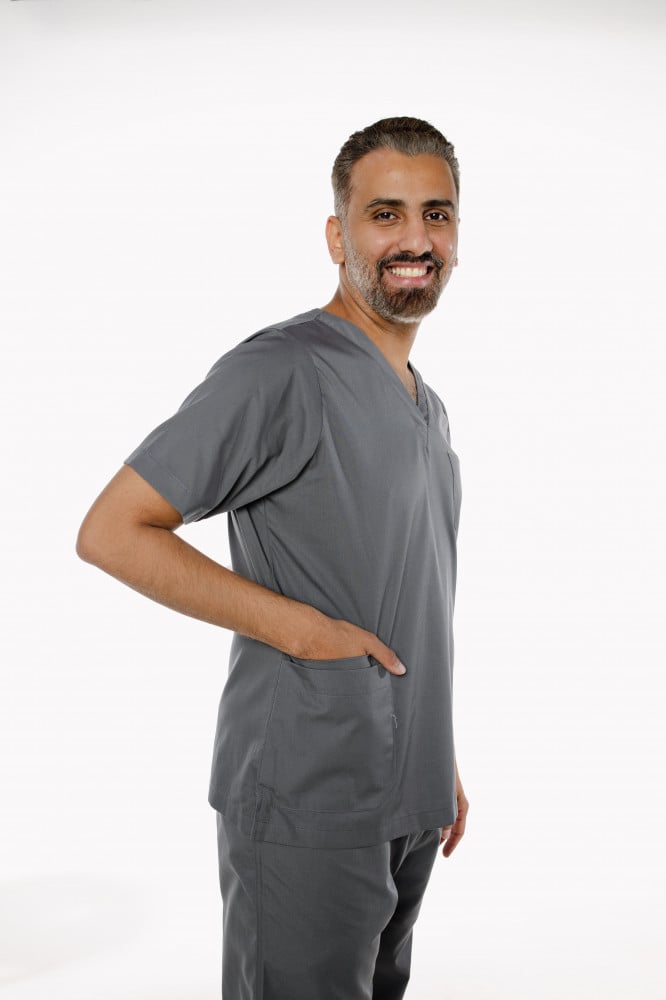 يتكون سكراب إزاري المميز رمادي من مزيج مثالي من نعومة القطن ومتانة البوليستر ولمعان الأسلاتين, كما أنه متين بما يكفي لتحمل الاستخدام اليومي. يتكون من بلوزة مريحة، عملية، وسهلة الارتداء تحتوي على ثلاثة جيوب لتخزين الملحقات والوصول إليها بسهولة، وبنطلون يوفر حرية في الحركة ويسمح للجسم بالتنفس ويحتوي على جيب جانبي عريض للأدوات اللازمة. كما أنه تم تصنيعه من خامات ذات جودة عالية، بحيث يمكن الحفاظ عليه في حالة جيدة لفترة طويلة.