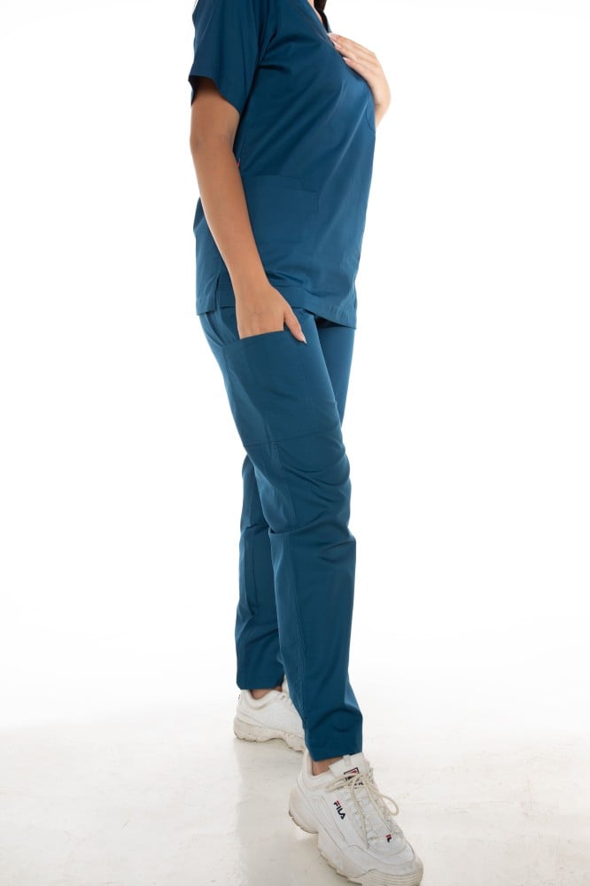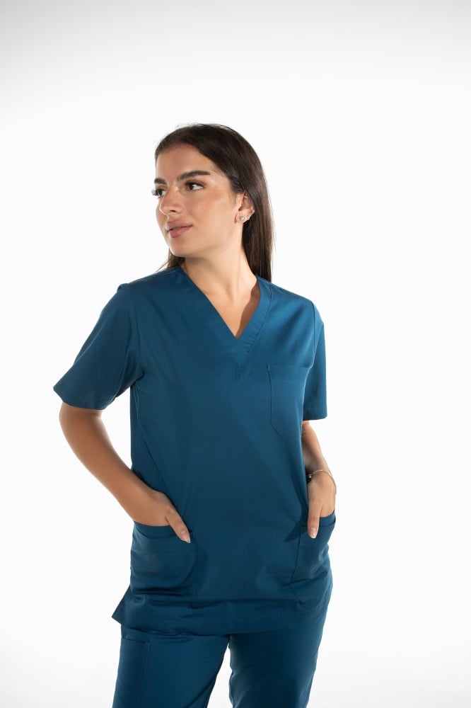 يتكون سكراب إزاري المميز أخضر غامق من مزيج مثالي من نعومة القطن ومتانة البوليستر ولمعان الأسلاتين, كما أنه متين بما يكفي لتحمل الاستخدام اليومي. يتكون من بلوزة مريحة، عملية، وسهلة الارتداء تحتوي على ثلاثة جيوب لتخزين الملحقات والوصول إليها بسهولة، وبنطلون يوفر حرية في الحركة ويسمح للجسم بالتنفس, ويحتوي على جيب جانبي عريض للأدوات اللازمة. كما أنه تم تصنيعه من خامات ذات جودة عالية، بحيث يمكن الحفاظ عليه في حالة جيدة لفترة طويلة.